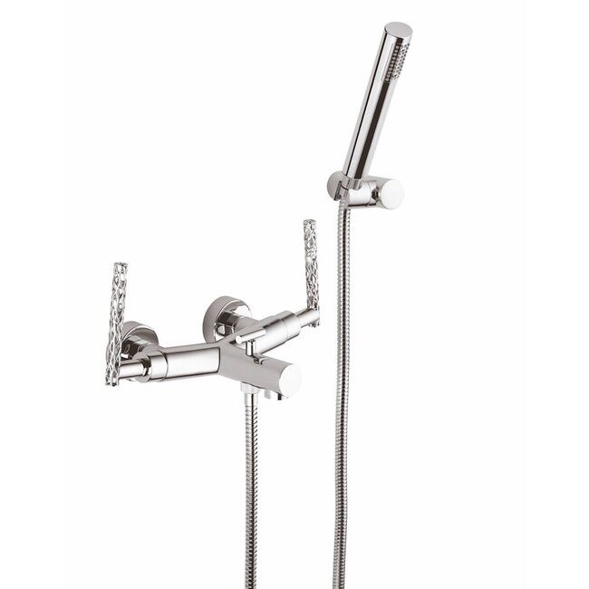 Gemaakt van hoogwaardig roestvrij staal met glanzende chroomafwerking, biedt deze set duurzaamheid en jarenlang gebruiksplezier. Dankzij de dubbele knoppenregeling kunt u de watertemperatuur nauwkeurig instellen, terwijl de flexibele doucheslang en ergonomische handdouche zorgen voor maximaal comfort.