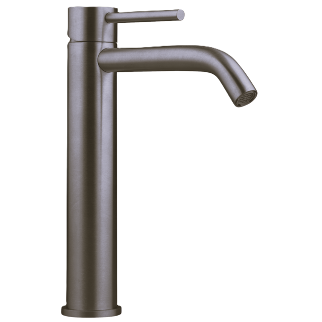 Speciaal ontworpen als luxe gunmetaal wastafelkraan voor hoge waskommen, biedt dit model maximale functionaliteit én een uitgesproken designstatement.