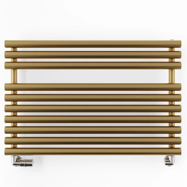 Deze stijlvolle radiator combineert modern design met praktische functionaliteit. Dankzij het verticale, ruimtebesparende formaat is deze perfect voor compacte badkamers of toiletruimtes. De messingkleurige afwerking zorgt voor een warme, elegante uitstraling die perfect past in zowel klassieke als industriële interieurs.
